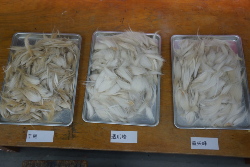 実際に原毛を展示し、個別に説明を行いました。(原毛詳細についてはこちら)