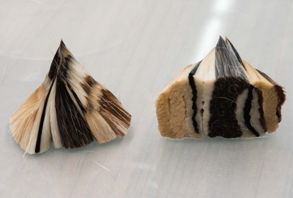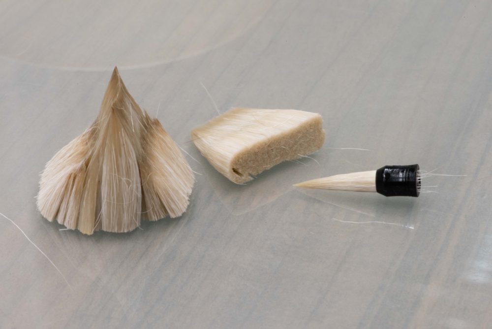 そのあと10数層にわたって山羊尾毛、山羊胴毛、馬尾毛、鹿毛等をつけていって